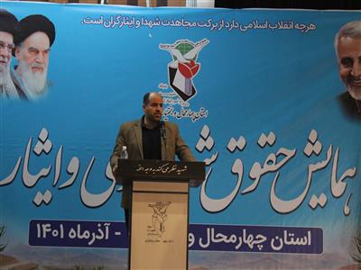 محمدحسين خدابنده شهرکي ۲۰ آذرماه در نخستين همايش حقوق شهروندي و ايثار در سالن اجتماعات ايثار اداره کل بنياد شهيد و امور ايثارگران با بيان اينکه جامعه ايثارگران هميشه همراه و در کنار نظام هستند و حفظ کرامت جامعه ايثارگران وظيفه تمام دستگاههاي اجرايي اُستان است، تاکيد کرد:نياز است قوانين مرتبط با ايثارگران آسيبشناسي شود.