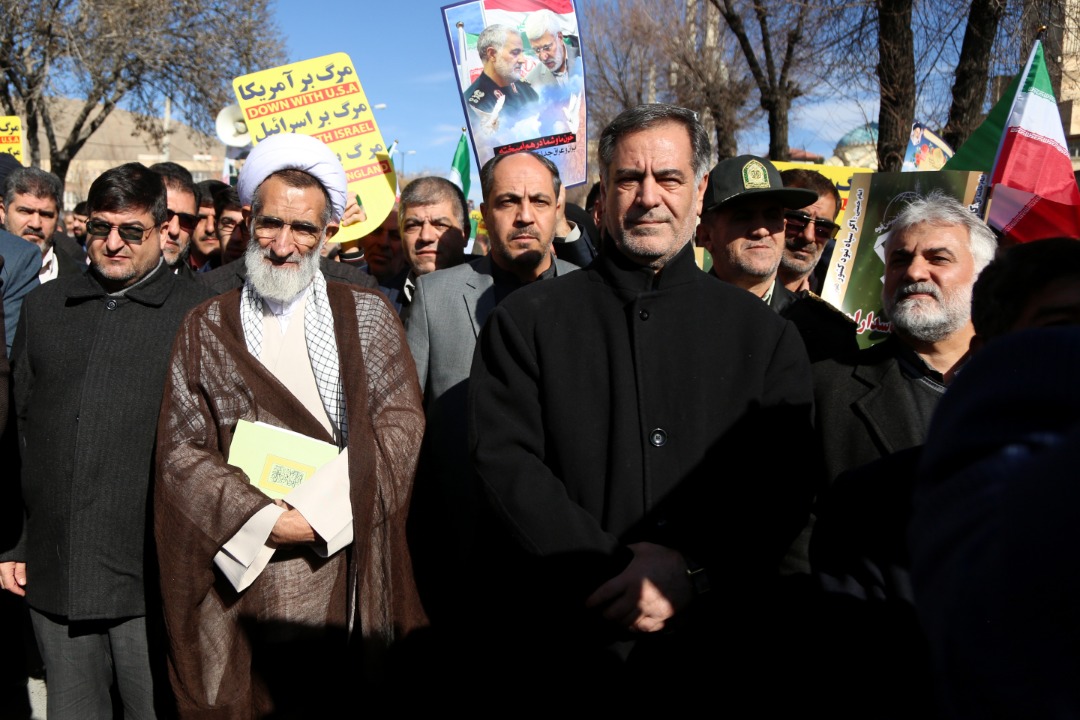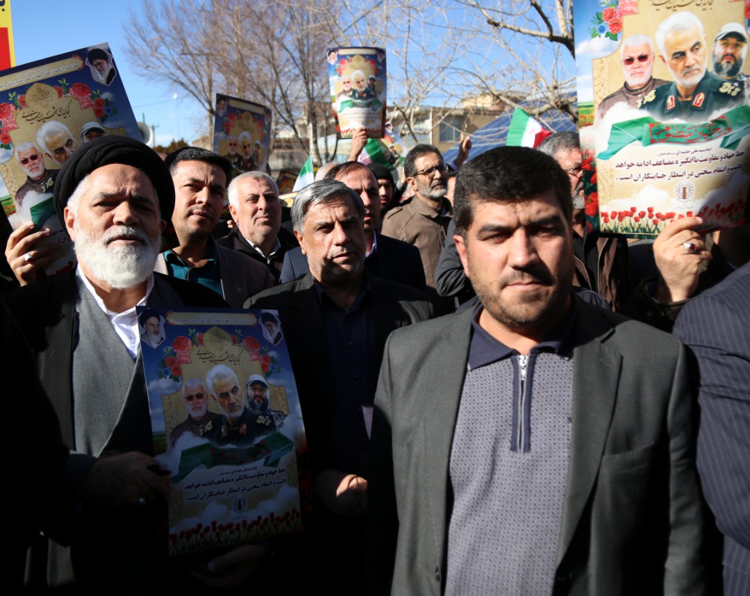 راهپيمايان که تمثال شهيد سردار قاسم سليماني و ابومهدي المهندس و ديگر شهداي مقاومت را در دست داشتند، هر گونه توطئه دشمن در راستاي تضعيف اقتدار جمهوري اسلامي ايران، نيروهاي مسلح و سپاه را محکوم کردند.